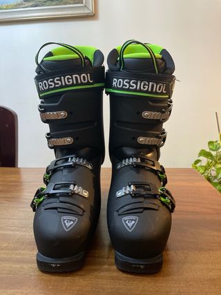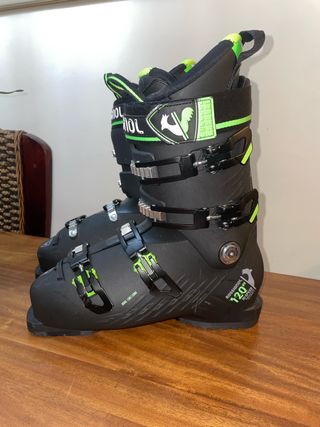 Botas de esquí Rossignol modelo 120 HV Hi-Speed. - Color negro con detalles en verde lima. - Cierre con 4 ganchos metálicos y correa superior. - Logo de Rossignol en la parte frontal y lateral. -27,5 de talla