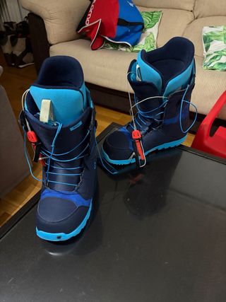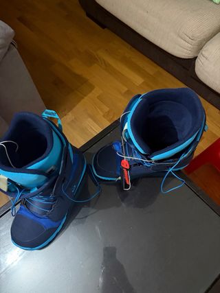 Botas de snowboard n°40, marca Wezde (Decathlon), en perfecto estado, usadas un día. Están impecables. Cierre por cordones interior y exterior. Botín extraíble.