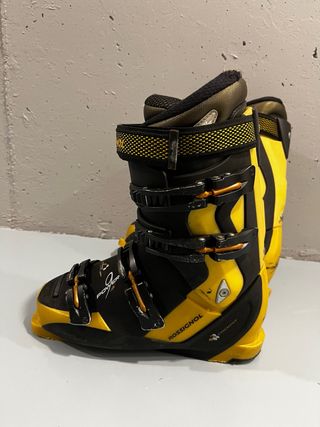 Bota de esquí Rossignol en color negro y amarillo. - Talla 27.5. - Cierres de hebilla. - Diseño deportivo.