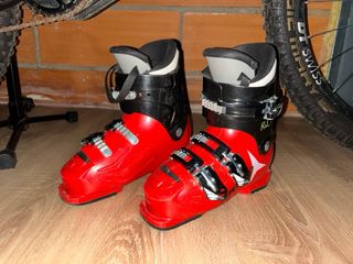 Botas de esquí para niño en color rojo y negro en muy buen estado. - Talla 21.5-22.5. - Cierres de hebilla metálica.
