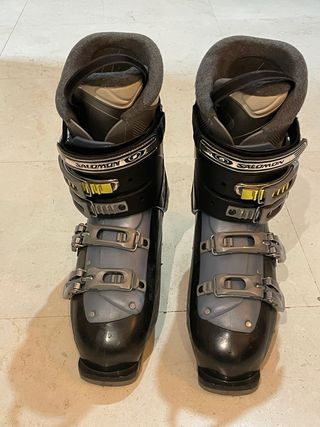 Botas de esquí Salomon Performa con un índice de flexión de 60-65. - Talla 28.5. - Cierre con 4 hebillas. - para calzado talla 45 - funcionan perfectamente - han esquiado por las mejores estaciones de los alpes y pirineos