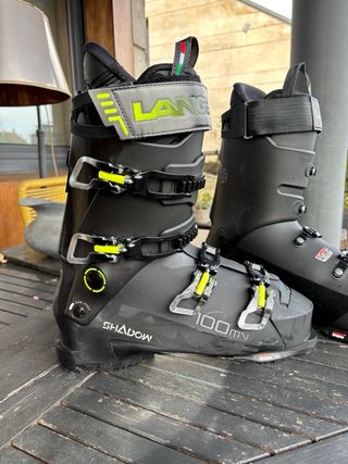Botas de esquí Lange Shadow en color negro. - Cierre con 4 ganchos. - Hebillas ajustables. - Logo de Lange en la lengüeta. - Suela con diseño antideslizante. Se venden por cambio a otro dureza, tienen 1 semana de esqui. Compradas en enero del 2026.