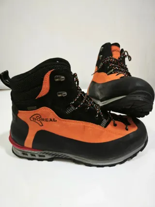 Botas de montaña Boreal Brenta en talla 47, sin semiautomáticas,tienen una sola salida, y están como nuevas. - Color naranja y negro. - Cierre con cordones. - Membrana impermeable.