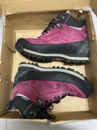 Botas de montaña Bestard de color morado y negro. Perfectas para senderismo y actividades al aire libre. - Material exterior de ante. - Suela de goma adherente. - Cierre con cordones. - Membrana Gore-Tex.