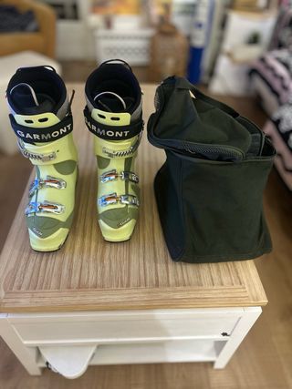 Botas de esquí Garmont Helium en color verde claro, talla 28cm (equivalente a 43 EU). Incluyen bolsa de transporte. - Marca: Garmont - Modelo: Helium - Talla: 28cm / 43 EU - Color: Verde claro