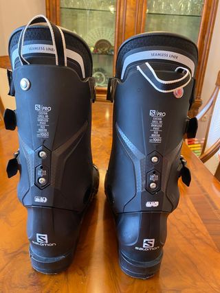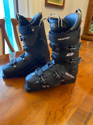 Botas de esquí Salomon S/Pro 100 - Talla 27/27.5. EU 43 - Flex 100 - Modelo cómodo y preciso, ideal para nivel intermedio-avanzado - Carcasa y botín termoformables (Custom Shell HD y My Custom Fit 3D) para un ajuste perfecto. Nunca han sido termoformadas. - Hebillas con ajuste micrométrico para una mejor sujeción y transmisión de potencia. - Suela ISO 5355 reemplazable en buen estado. Compatible con fijaciones GripWalk - Conserva la caja y calzas originales, nunca usadas. - Poco uso, siempre muy cuidadas. Las vendo por cambio de material. Entrega en mano o envío.