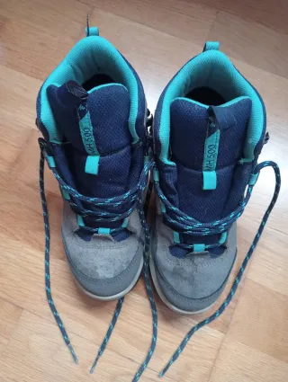 Botas de montaña Quechua impermeables, modelo MH-500, en talla 33. Perfectas para senderismo. Utilizadas únicamente 3 veces, en perfecto estado. - Color gris y azul. - Cierre con cordones. - Caña alta para mayor sujeción.