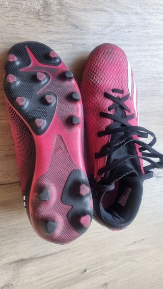 Botas de fútbol Adidas en color rojo, talla 36. Perfectas para jugar en campos de interior. - Cierre con cordones. - Logo de Adidas en el lateral. - Diseño deportivo.