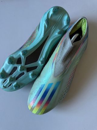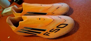 Botas de fútbol Adidas F50 sin estrenar, con un diseño moderno y llamativo. - Talla 43. - Alta calidad. - Diseño sin cordones.
