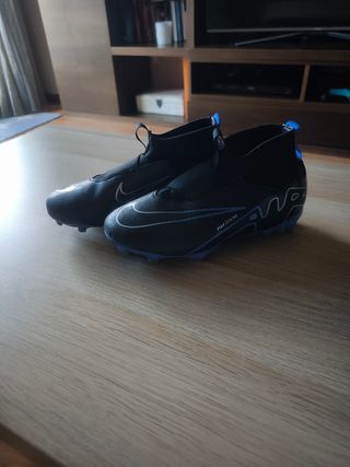 Botas de fútbol Nike Jr Mercurial en talla 36.5. - Color negro con detalles en azul. - Diseño tipo calcetín para un ajuste ceñido. - Logo de Nike en el lateral.