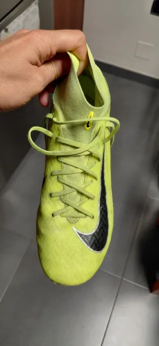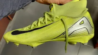 Botas de fútbol Nike en color amarillo neón. - Talla 6 UK / 40 EU. - Diseño de media caña. - Cierre con cordones. - Suela con tacos para césped.