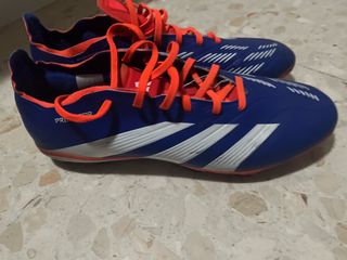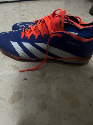 Botas de fútbol Adidas Predator Pro en llamativo color naranja y azul. Diseñadas para un control y precisión superiores en el campo. Se an usado dos semanas. Ami hijo no le van bien! Puedo enseñar factura de FÚTBOLMOTION. - Diseño Predator. - Tiras Adidas blancas. - Suela con tacos para césped. - Talla 45