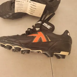 Botas de fútbol Kelme modelo Luis Enrique. ✋Ojo !!! Botas para coleccionistas ✋ - Exterior de piel bovina. - Forro sintético. - Suela de caucho. - Fabricadas en España 1990 - Cierre con cordones. - Detalle de logo en naranja.