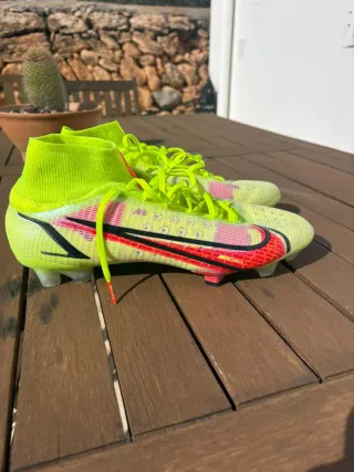 Vendo botas de fútbol Nike Zoom Mercurial Superfly 10 Elite AG-Pro color Magic Flamingo / Black. Talla EUR 43 Modelo Elite (gama profesional) Suela AG-Pro para césped artificial Muy ligeras y de alta gama Están en buen estado, usadas tres entrenamientos, se venden porque le están pequeñas, bien cuidadas.Se entregan con bolsa y la caja original. Perfectas para jugadores rápidos que buscan botas de máxima calidad. Precio: 180 Euros, negociables. Entrega en mano o envío.