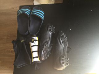 Botas de fútbol talla 39 gama media, nike mercurial vapor elite 14 de niño. Chanclas talla 39 adidas y espinilleras puma.
