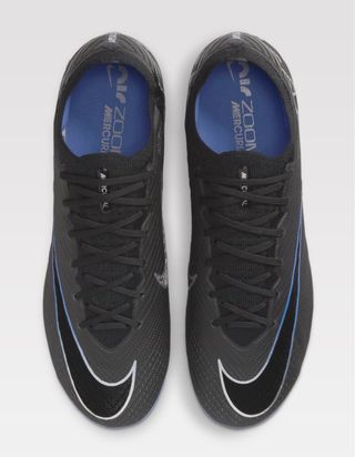 Botas de fútbol Nike Mercurial Zoom con cordones. - Diseño en color negro. - Swoosh plateado en el lateral. - Detalle azul iridiscente en la puntera. - Suela interior azul con logo 'Zoom Air Mercurial'.