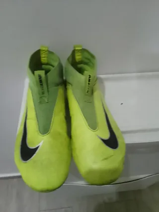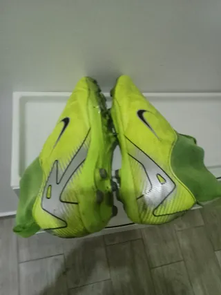 Botas de fútbol Nike Mercurial Air Zoom laceless. Talla 46. (talla pequeño, ver y probar). Usadas, con desgaste visible en los tacos (ver fotos), pero todavía funcionales. Ideales para entrenamientos o fútbol amateur. 1 año de uso.