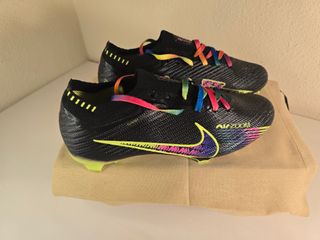 Botas de fútbol Nike Air Zoom con un diseño llamativo y colorido. - Cordones con degradado arcoíris. - Swoosh y detalles laterales en colores vibrantes. - Suela con tacos para césped.