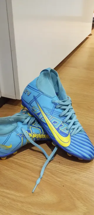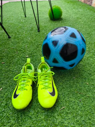 Botas de fútbol Nike Air Zoom – Talla 36,5 Estado: Nuevas con etiqueta Color: Amarillo neón con detalles en negro Incluye: Caja original Detalles: Tacos para césped artificial, diseño ligero, suela resistente, lengüeta con tirador Botas Nike Air Zoom en color amarillo neón súper llamativo. Son muy cómodas, ligeras y ofrecen gran agarre en césped artificial. Están nuevas sin estrenar, tal como se aprecia en las fotos. Ideales para entrenamiento y competición. ⚽ Diseño moderno, materiales top y gran rendimiento 📦 Envío rápido