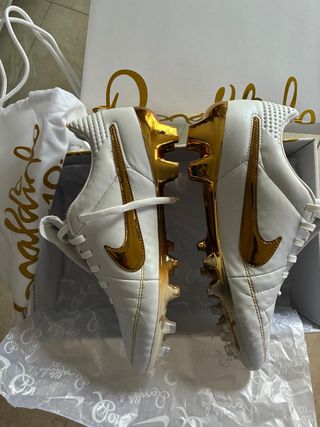 Botas de fútbol Nike Tiempo Ronaldinho SE edición especial. - Color blanco con detalles dorados. - Diseño exclusivo. - Incluye bolsa de tela. _talla 40 totalmente nuevas sin estrenar
