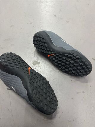 Botas de fútbol Nike Phantom, nuevas a estrenar. Se venden por dejar de practicar el deporte. - Diseño moderno. - Color gris y negro con detalles naranjas. - Suela con tacos para césped.