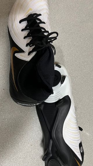 Botas de fútbol Nike Phantom en excelente estado, casi nuevas. - Color blanco con detalles dorados y negros. - Cierre con cordones negros. - Diseño tipo calcetín para un ajuste cómodo. Negociables