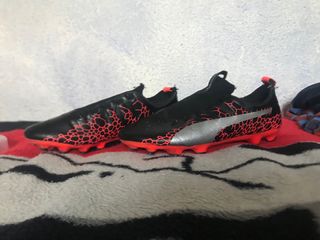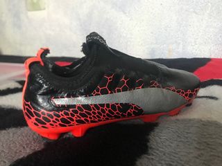 Botas de fútbol Puma para niño, nuevas a estrenar. Ideales para jugar en campos de césped artificial. - Color rojo y negro. - Talla (41). - Diseño moderno y ligero.