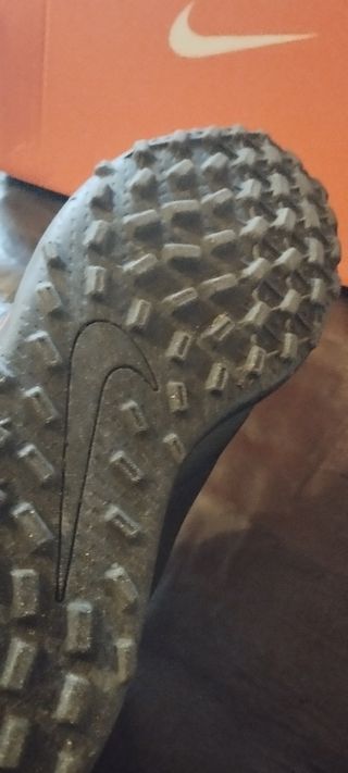 Botas de fútbol Nike ideales para fútbol base tanto en césped artificial como en natural Pequeño rasguño en la parte delantera de la bota izquierda Talla 38'5
