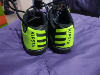 Botas de fútbol Kipsta con suela multitaco (TF), perfectas para césped artificial, tierra y pistas duras. Diseño deportivo en azul con detalles verdes, ligeras y muy cómodas, ideales para entrenamientos y partidos. Buen agarre y estabilidad para jugar con confianza. ✨ Estado: casi sin usar 👟 Talla: 31 ⚽ Marca: Kipsta 👣 Suela: multitaco (TF) Ideales para peques futboleros que quieren rendir al máximo sin gastar mucho 💪⚽