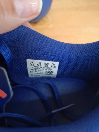 Botas de fútbol para niño, talla 35. - Color azul con detalles naranjas. - Cierre con cordones.