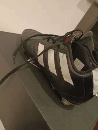 Botas de fútbol Adidas Copa Pure para niño en color negro con detalles dorados. Talla 34 para niño Las ha utilizado solo media temporada y las ha cambiado porque le han quedado pequeñas. - Diseño moderno y cómodo. - Cierre con cordones.