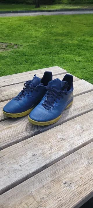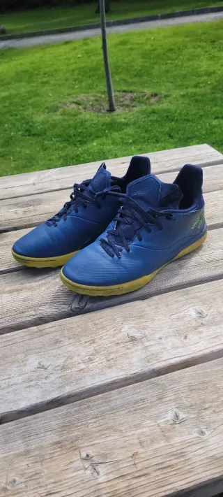 Botas de fútbol para niño en color azul y amarillo. Perfectas para jugar en césped artificial o natural. - Cierre con cordones. - Diseño deportivo. - Suela con tacos.talla 32