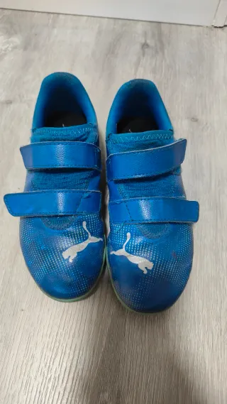 Botas de fútbol para niño con cierre de velcro. - Diseño deportivo en color azul. - Logo de Puma plateado. - Cierre con dos tiras de velcro. Talla 31