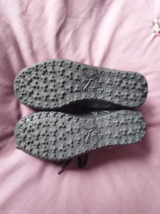 Botas de fútbol sala para niño en talla 34. - Color negro y plateado. - Marca Puma.