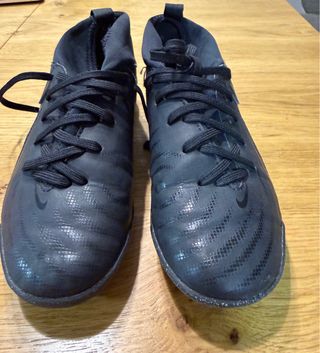 Botas de fútbol Nike (talla EU 41-42) en color negro. Perfectas para jugar en césped. Poco uso en niño de 10 años. - Diseño deportivo. - Cierre con cordones. - Logo de Nike.