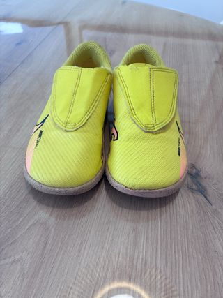 Botas de fútbol para niño de la marca Nike. - Color amarillo neón con detalles en rojo. - Talla 37.5. Están muy bien pero con el negro del campo de juego.