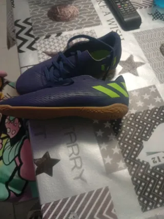 Vendo botas de fútbol sala Super Sala Adidas - Color: Azul con detalles amarillos. - Talla: 36 2/3 - Suela: Goma para excelente tracción y estabilidad. No desgastada. - Diseño: Ideal para movimientos rápidos y cambios de dirección. Sin roces. - Materiales: Alta calidad, garantizando durabilidad y confort. - Estado: En perfecto estado, con poco uso - Motivo de venta: Se le quedaron pequeñas rápidamente Aunque son perfectas para el fútbol sala, también se pueden usar en exteriores sobre superficies lisas. Venta en persona, en la ciudad de Zaragoza. ¡No dudes en contactar para más información!