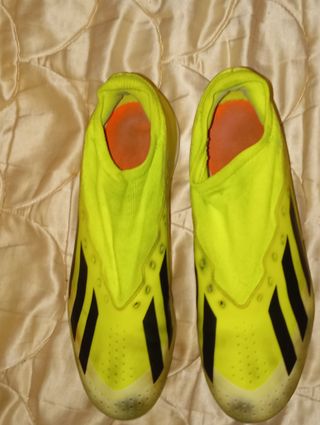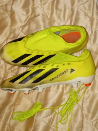 Botas de fútbol Adidas Crazyfast en color amarillo neón. - Talla 41/5. - Diseño con cordones. - Detalles de las tres franjas negras. - Suela con tacos para césped.
