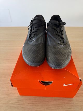 Botas de fútbol Nike en color negro y talla 43. - Diseño acolchado en la parte delantera. - Logo de Nike en la plantilla. - Cordones negros. - Pone talla 44, pero dan menos talla.