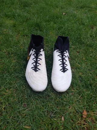Vendo botas prácticamente nuevas porque me quedan muy justas, tienen 6 partidos solo. Están intactas, no tienen ningún defecto ni desgaste. Las vendo para poder comprarme otras de mi talla. Son una talla 43. Me valieron 115 €