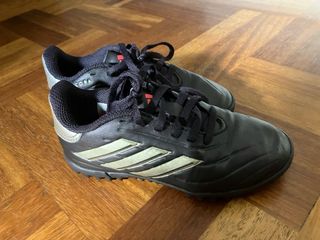 Botas de fútbol para niño de la marca Adidas, modelo Copa. número 30 - Color negro con detalles plateados. - Cierre con cordones. - Suela con tacos para césped artificial. - Multitacos