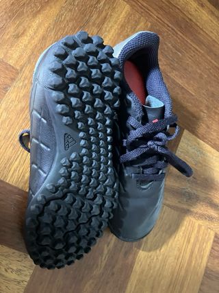 Botas de fútbol Adidas Predator en talla 34. Usadas 1 día solo, le quedan pequeñas. Diseñadas para ofrecer un buen agarre y control en el campo. - Exterior sintético. - Cierre de cordones. - Suela con tacos para césped artificial o natural.