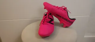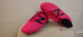 Botas de fútbol New Balance Tekela en color rosa y negro, talla 34.5. Probadas a mi hijo en mi casa y quedaban pequeñas - Diseño llamativo en rosa vibrante. - Detalle del logo 'N' en negro. - Cordones a juego en rosa.