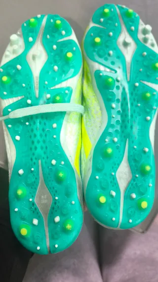 Estan practicamente nuevas,utilizadas 1 vez Botas de fútbol Adidas en color verde brillante. Diseñadas para ofrecer un buen rendimiento en el campo. - Color verde neón. - Detalle de las tres franjas Adidas en negro. - Cierre con cordones.