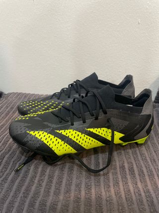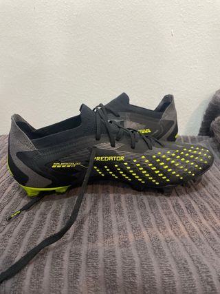 Botas de fútbol Adidas Predator en perfecto estado. Diseñadas para un rendimiento óptimo en el campo. - Color negro con detalles en amarillo neón. - Talla 7 1/2 US - 40 2/3 EU. - Cierre de cordones. - precio negociable