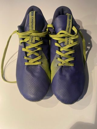 Botas de rugby o fútbol de la marca Canterbury en color morado con detalles en verde lima. - Diseño deportivo. - Cordones a juego. - Logo de Canterbury en la lengüeta.