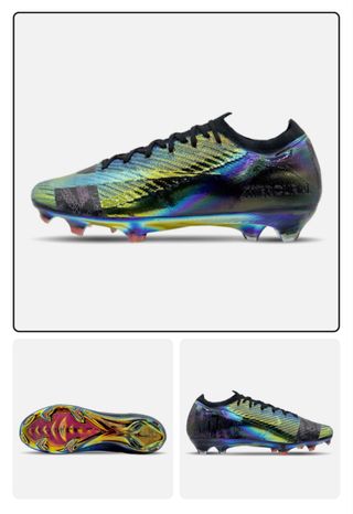 Botas de fútbol de edición limitada con un diseño iridiscente y llamativo. - Diseño multicolor con efecto holográfico. - Detalles gráficos en la puntera y el talón. - Suela con tacos para césped. Están sucias hay que limpiarlas solo