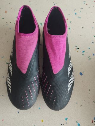 Botas de fútbol Adidas Predator Accuracy + FG. - Diseño sin cordones. - Parte superior de tejido Primeknit. - Suela FG para terreno firme. - Talla 41 1/3 Tiene signos de desgaste por el uso pero nada catastrófico, se pueden usar perfectamente sin ningún tipo de problema, de necesitar más fotos os las mando sin problema.