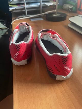 Botas de fútbol Adidas en color rosa brillante, diseñadas para niñas. - Talla 31. - Cierre con cordones. - Detalle de las tres bandas Adidas en negro. tienen un desperfecto en un taco y en el talón pero en general son muy chulas y tienen mucho uso aun