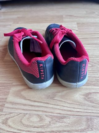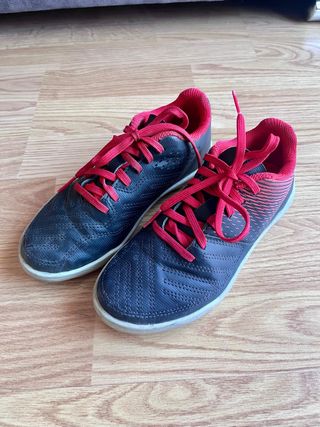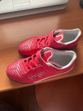 Botas de fútbol sala Decathlon, talla 32, en buen estado. Ideales para jugar en pista cubierta. - Diseño moderno y ligero. - Suela en buen estado. - Perfectas para jóvenes jugadores.